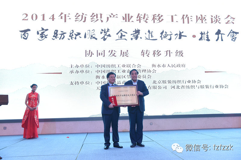 授予衡水工业新区“全国纺织产业转移试点园区”